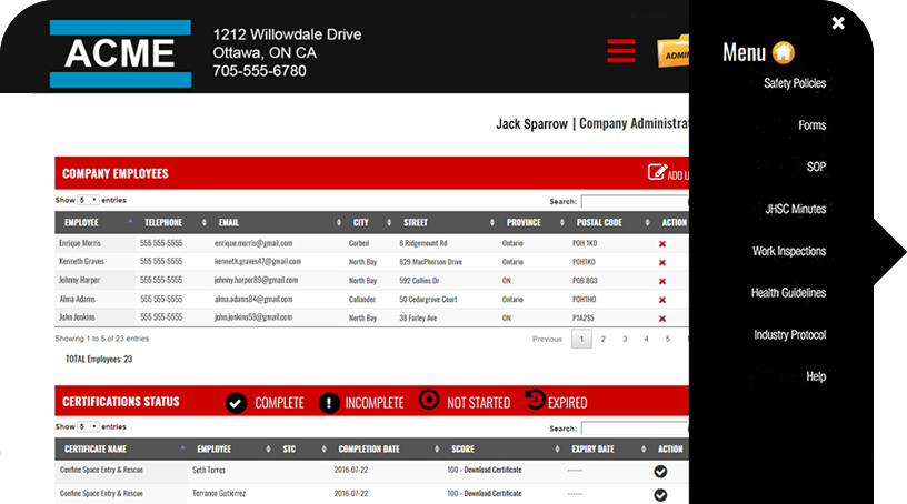 Create and manage any type of training record that your company and safety trainers provide. Manage safety trainers, companies, and certificates all from one spot. An excellent way to view and keep records of training. The system allows you to easily sort information by trainer, company or certification status and can notify your clients of any upcoming expirations. Create logins for your safety trainers so they can manage the courses they are allowed to train for within your company and include their personalized signatures. Connect with users and companies through one system. Your account allows you to customize menus and personalize the look and feel of the application.